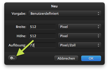 Wenn man oft mit ganz bestimmten Dokumentgrößen zu tun hat, dann lohnt es sich, diese als neue benutzerdefinierte Vorgabe abzuspeichern. So brauch man beim erstellen eines neuen Dokuments nicht mehr die Breite, Höhe und Auflösung einzugeben, sondern kann sie einfach aus der Vorgabe-Selectbox auswählen.