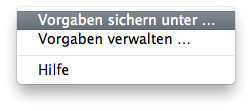 Wählen Sie aus dem Menü den Eintrag "Vorgabe sichern unter ..." aus.