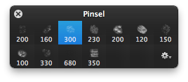 Blenden Sie die Pinsel-Palette ein (Darstellung -> Pinsel einblenden).