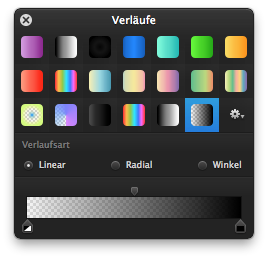 Klicken Sie in der Verläufe-Palette auf den Action-Button (