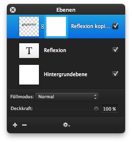 ) mit gedrückter Maustaste so weit nach unten, bis etwa die Hälfte der Höhe des gespiegelten Wortes "Reflexion" zu sehen ist.