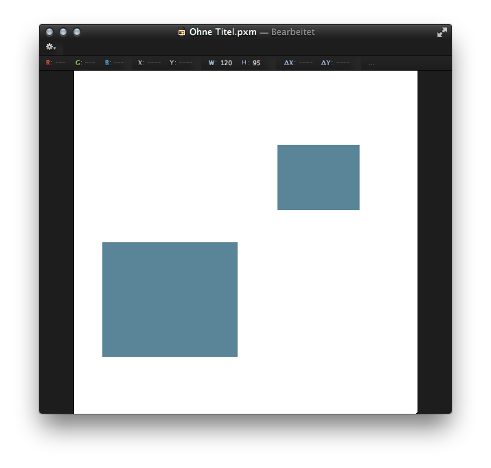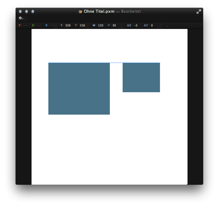 Um Elemente an anderen Elementen exakt auszurichten, bietet Ihnen Pixelmator ab der Version 2.1 Cherry zusätzliche Hilfen. Das folgende Tutorial zeigt Ihnen, wie Sie zwei rechteckige Formen an ein und der selben Y-Position ausrichten.
