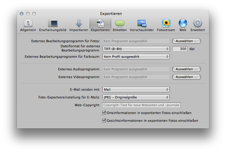 Wählen Sie aus dem Menü "Aperture" den Eintrag "Einstellungen ...".
