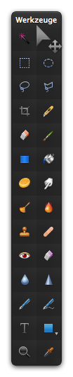 Standardmäßig sind auf der Werkzeuge-Palette nicht alle Werkzeuge zu sehen, die Pixelmator bietet. Dies hat einen einfachen Grund: Übersichtlichkeit. Nicht jeder benötigt immer alle verfügbaren Werkzeuge.