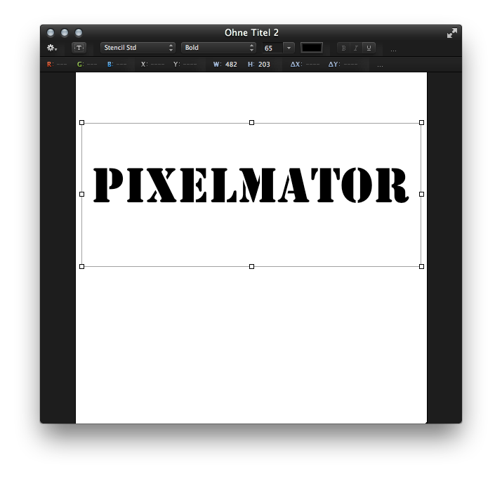 Ziehen Sie an beliebiger Stelle das Arbeitsfläche einen Text-Rahmen auf und schreiben "PIXELMATOR" rein.