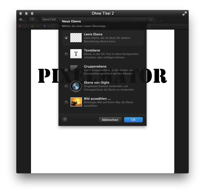 Aktivieren Sie im Dialog "Neue Ebene" die Option "Leere Ebene" und klicken auf den OK-Button.