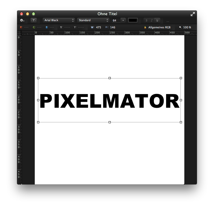 Ziehen Sie auf der Arbeitsfläche vom linken zum rechten Rand einen Text-Rahmen auf und schreiben "PIXELMATOR" rein.