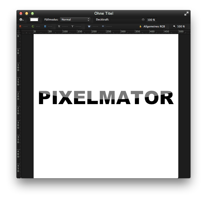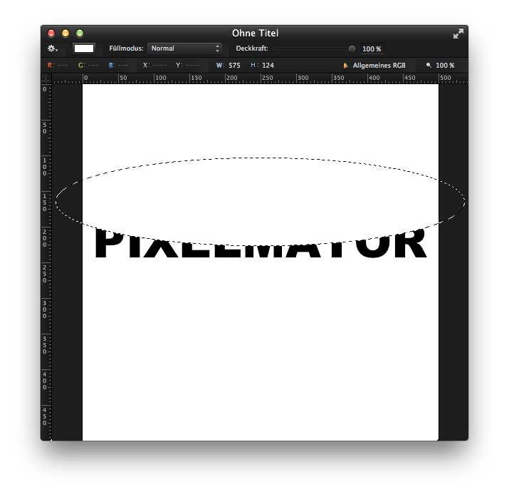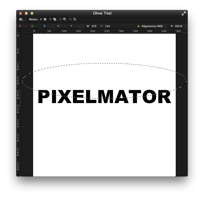 Ziehen Sie mit dem Werkzeug eine breite Auswahl über den oberen Teil des Textes. Achten Sie dabei darauf, dass die Auswahl mittig zum Text steht. Sollten Sie nicht genug Platz für die Auswahl haben, dann ziehen Sie das Pixelmator-Fenster etwas breiter oder verkleinern über das "Zoomen Werkzeug" (Shortcut: Z / Icon: